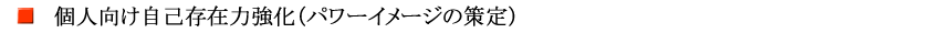 | ■ エクゼクティブコース | ・パーソナルカラー診断 ・顔型診断&印象分析:顔型による似合うトータルスタイル(髪型・眼鏡・ネクタイ・襟型)をご提案 ・スピーチレッスン:場に応じた、相応しい話し方をレッスン ・マナーレッスン:場に応じた、相応しい立ち居振る舞いをレッスン ・ポージング&ボディランゲージのレッスン ・スタイル診断&体型補正テクニック:体系を補正し、あなたに合ったスーツスタイルをご提案します ・お客様オリジナルパワーイメージの構築:自己外見力を向上させるために、お客様に合ったトータルコーディネイトをご提案します。 |